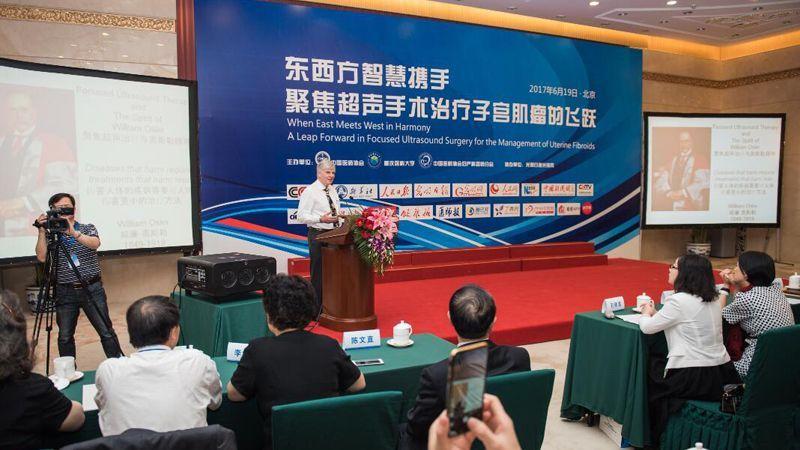 2017年6月19日,在北京的全国政协礼堂,由中国医师协会、重庆医科大学及中国医师协会妇产科分会联合举办“东西方智慧携手——聚焦超声手术治疗子宫肌瘤的飞跃”的成果发布会成功召开。全国政协副主席、九三学社中央主席韩启德院士,中国医师协会会长张雁灵,中国医师协会妇产科分会、中国工程院郎景和院士、英国牛津大学David William Cranston教授、重庆医科大学杨竹副校长在本次会议上做了重要讲话。超声医疗国家工程研究中心首席医学官陈文直教授汇报了研究成果。